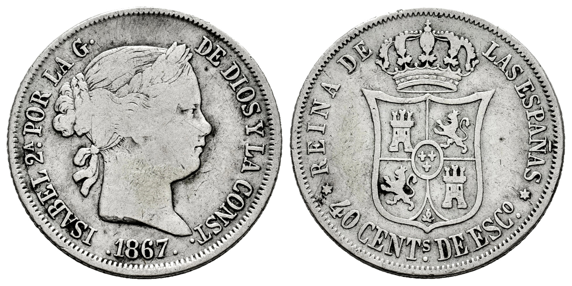 ISABEL II 40 CENTIMOS DE ESCUDO 1867 MADRID